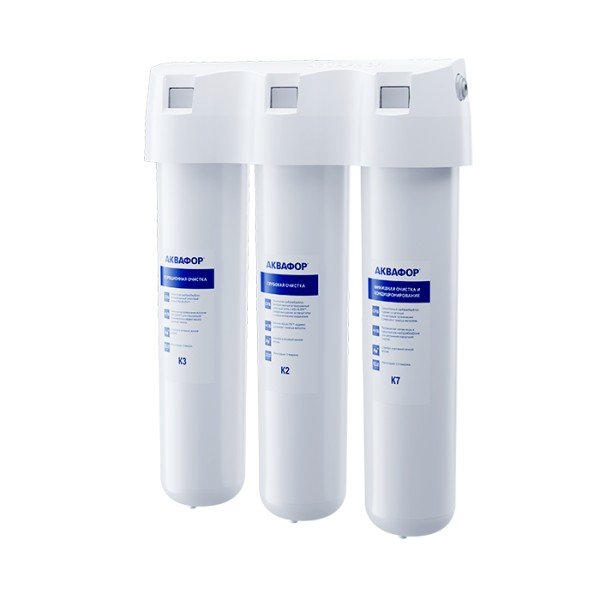 Обратноосмотические фильтры используются для абсолютной защиты от накипи, т.к. полностью устраняют соли жесткости из воды.нетЧисло ступеней очисткиКартриджи последовательно очищают воду и от видимых примесей, и от растворенных. Первый картридж задерживает более крупные частицы, а каждый последующий - более мелкие. Чем больше ступеней - тем лучше фильтр очистит воду: поймает более мелкие видимые частицы ржавчины, песка и ила, успеет захватить из воды максимум растворенных примесей - хлора, нитратов, тяжелых металлов и других.3МинерализацияПроисходит после финишной очистки воды. Необходима прежде всего в фильтре обратного осмоса, поскольку такой фильтр полностью устраняет из воды все примеси, в том числе минералы. Минералы добавляются в оптимальной концентрации - для пользы и привычного вкуса воды.нетПостфильтрацияФинальный этап очистки воды: картриджи постфильтрации удаляют самые мелкие механические частицы и кондиционируют воду, придавая ей более приятный вкус.нетНакопительная емкостьОбычно нужна в фильтрах обратного осмоса. Глубокая фильтрация требует времени. Чтобы Вам не приходилось ждать, пока вода наберется в чайник или кастрюлю, почти во всех моделях используется накопительный бак для чистой воды или другая емкость. В стандартном фильтре обратного осмоса под мойку воды в баке достаточно для семьи из 5-6 человек.нетФильтрующий модуль в комплектедаОтдельный краннетДавление в водопроводе не более, атмМаксимальное давление воды на входе в систему, при котором возможна стабильная работа фильтра.6,5Ширина, смОбратите внимание на габариты фильтра, и измерьте, сколько свободного пространства в предполагаемом месте установки.26,0Глубина, смОбратите внимание на габариты фильтра, и измерьте, сколько свободного пространства в предполагаемом месте установки.9,0Защита корпуса от гидроударовдаИсходная водаЖесткая вода – вода с избытком минеральных солей. От нее появляется накипь в чайнике, известковый налет на сантехнике и разводы на посуде. Мягкая вода – та, в которой мало минеральных солей. Нет накипи в чайнике и разводов на посуде. Фильтры для мутной воды и фильтры от ржавчины, как правило, имеют несколько стадий очистки и дополнительный полипропиленовый картридж. Он задерживает механические частицы ила, песка и ржавчины и защищает картриджи более глубокой очистки.мягкаяУстраняет мутностьМутность водопроводной воды может говорить о том, что в ней много мелких механических частиц. Важно, чтобы в фильтре был установлен дополнительные картридж механической предфильтрации (полипропиленовый) - он продлит жизнь остальным картриджам более тонкой очистки.нетУстраняет ржавчину, бурый осадокЛюбой фильтр под мойку удалит из воды крупные и мелкие частицы ржавчины. Некоторые фильтры имеют повышенный ресурс по железу: они дольше служат в такой воде, поскольку лучше подходят для удаления из воды железа и механических частиц ржавчины.нетЗащита от бактерийВсе проточные фильтры в той или иной степени защищают от бактерий. Например, добавление серебра препятствует их размножению. Это стандартная степень защиты. Если в семье есть дети, пожилые люди или аллергики, воду рекомендуется обеззараживать, то есть полностью удалять микроорганизмы. Повышенную защиту от бактерий дают фильтры с половолоконной мембраной. Это пучок тр