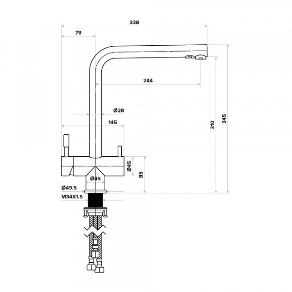 Габариты345 х 338 ммВысота излива310 ммВынос излива244 ммВыдвижной изливНет