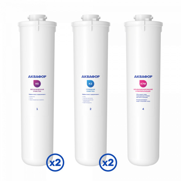 Мы подобрали для Вас комплекты с учетом нашего многолетнего опыта. Этот набор модулей подходит для стандартной водопроводной воды. Если в процессе эксплуатации фильтра поток воды снизился (скорость наполнения ёмкости), то необходимо приобрести Обратноосмотическую мембрану К-50. Для загрязненной воды с механическими примесями (песок, ржавчина), рекомендуем докупить сменный модуль K5.