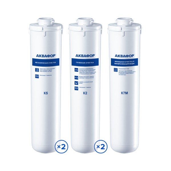 • Мы подобрали для Вас комплекты картриджей для фильтров Аквафор Морион с учетом нашего многолетнего опыта. Этот набор модулей подходит для стандартной водопроводной воды. Если в процессе эксплуатации фильтра поток воды снизился (скорость наполнения ёмкости), то необходимо приобрести Обратноосмотическую мембрану К-50S. Для загрязненной воды с механическими примесями (песок, ржавчина), рекомендуем докупить сменный модуль K5