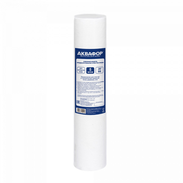 • Сменный модуль для очистки холодной воды от видимых растворенных взвесей - песка, ржавчины и других механических примесей. Обеспечивает базовую предочистку воды во всей квартире, при этом напор остается практически без изменений. В зависимости от степени загрязнения, выбирайте картриджи пористостью 5, 10 или 20 микрон.