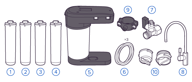 Обратноосмотические фильтры используются для абсолютной защиты от накипи, т.к. полностью устраняют соли жесткости из воды.даЧисло ступеней очисткиКартриджи последовательно очищают воду и от видимых примесей, и от растворенных. Первый картридж задерживает более крупные частицы, а каждый последующий - более мелкие. Чем больше ступеней - тем лучше фильтр очистит воду: поймает более мелкие видимые частицы ржавчины, песка и ила, успеет захватить из воды максимум растворенных примесей - хлора, нитратов, тяжелых металлов и других.4МинерализацияПроисходит после финишной очистки воды. Необходима прежде всего в фильтре обратного осмоса, поскольку такой фильтр полностью устраняет из воды все примеси, в том числе минералы. Минералы добавляются в оптимальной концентрации - для пользы и привычного вкуса воды.даПостфильтрацияФинальный этап очистки воды: картриджи постфильтрации удаляют самые мелкие механические частицы и кондиционируют воду, придавая ей более приятный вкус.даНакопительная емкостьОбычно нужна в фильтрах обратного осмоса. Глубокая фильтрация требует времени. Чтобы Вам не приходилось ждать, пока вода наберется в чайник или кастрюлю, почти во всех моделях используется накопительный бак для чистой воды или другая емкость. В стандартном фильтре обратного осмоса под мойку воды в баке достаточно для семьи из 5-6 человек.даФильтрующий модуль в комплектедаОтдельный крандаДавление в водопроводе не менее, атм2,0Давление в водопроводе не более, атмМаксимальное давление воды на входе в систему, при котором возможна стабильная работа фильтра.6,5Защита корпуса от гидроударовдаИсходная водаЖесткая вода – вода с избытком минеральных солей. От нее появляется накипь в чайнике, известковый налет на сантехнике и разводы на посуде. Мягкая вода – та, в которой мало минеральных солей. Нет накипи в чайнике и разводов на посуде. Фильтры для мутной воды и фильтры от ржавчины, как правило, имеют несколько стадий очистки и дополнительный полипропиленовый картридж. Он задерживает механические частицы ила, песка и ржавчины и защищает картриджи более глубокой очистки.любаяУстраняет мутностьМутность водопроводной воды может говорить о том, что в ней много мелких механических частиц. Важно, чтобы в фильтре был установлен дополнительные картридж механической предфильтрации (полипропиленовый) - он продлит жизнь остальным картриджам более тонкой очистки.даУстраняет ржавчину, бурый осадокЛюбой фильтр под мойку удалит из воды крупные и мелкие частицы ржавчины. Некоторые фильтры имеют повышенный ресурс по железу: они дольше служат в такой воде, поскольку лучше подходят для удаления из воды железа и механических частиц ржавчины.даЗащита от бактерийВсе проточные фильтры в той или иной степени защищают от бактерий. Например, добавление серебра препятствует их размножению. Это стандартная степень защиты. Если в семье есть дети, пожилые люди или аллергики, воду рекомендуется обеззараживать, то есть полностью удалять микроорганизмы. Повышенную защиту от бактерий дают фильтры с половолоконной мембраной. Это пучок трубок с порами размером 0,1 микрон (что в 1000 раз тоньше человеческого волоса) - бактерии и яйца паразитов “застревают”, как в “сите”. Полученную воду не придется кипятить и можно использовать для приготовления детского питания. Абсол