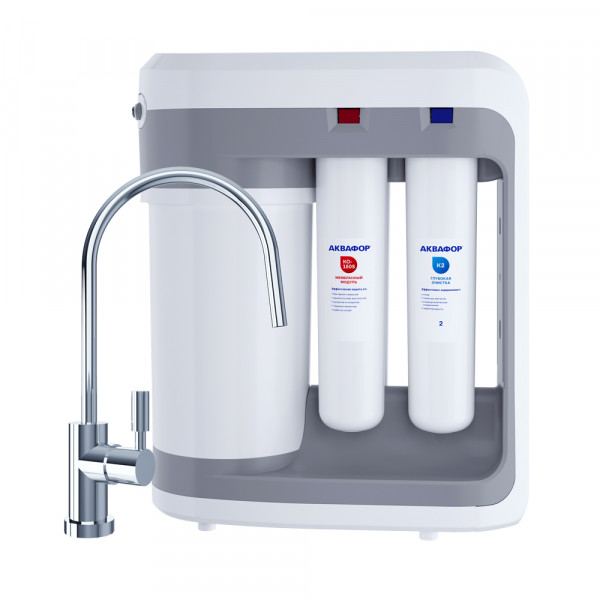Обратноосмотические фильтры используются для абсолютной защиты от накипи, т.к. полностью устраняют соли жесткости из воды.даЧисло ступеней очисткиКартриджи последовательно очищают воду и от видимых примесей, и от растворенных. Первый картридж задерживает более крупные частицы, а каждый последующий - более мелкие. Чем больше ступеней - тем лучше фильтр очистит воду: поймает более мелкие видимые частицы ржавчины, песка и ила, успеет захватить из воды максимум растворенных примесей - хлора, нитратов, тяжелых металлов и других.4Накопительная емкостьОбычно нужна в фильтрах обратного осмоса. Глубокая фильтрация требует времени. Чтобы Вам не приходилось ждать, пока вода наберется в чайник или кастрюлю, почти во всех моделях используется накопительный бак для чистой воды или другая емкость. В стандартном фильтре обратного осмоса под мойку воды в баке достаточно для семьи из 5-6 человек.даФильтрующий модуль в комплектедаОтдельный крандаДавление в водопроводе не более, атмМаксимальное давление воды на входе в систему, при котором возможна стабильная работа фильтра.6,5Ширина, смОбратите внимание на габариты фильтра, и измерьте, сколько свободного пространства в предполагаемом месте установки.40,5Глубина, смОбратите внимание на габариты фильтра, и измерьте, сколько свободного пространства в предполагаемом месте установки.19,5Защита корпуса от гидроударовдаИсходная водаЖесткая вода – вода с избытком минеральных солей. От нее появляется накипь в чайнике, известковый налет на сантехнике и разводы на посуде. Мягкая вода – та, в которой мало минеральных солей. Нет накипи в чайнике и разводов на посуде. Фильтры для мутной воды и фильтры от ржавчины, как правило, имеют несколько стадий очистки и дополнительный полипропиленовый картридж. Он задерживает механические частицы ила, песка и ржавчины и защищает картриджи более глубокой очистки.любаяУстраняет мутностьМутность водопроводной воды может говорить о том, что в ней много мелких механических частиц. Важно, чтобы в фильтре был установлен дополнительные картридж механической предфильтрации (полипропиленовый) - он продлит жизнь остальным картриджам более тонкой очистки.даУстраняет ржавчину, бурый осадокЛюбой фильтр под мойку удалит из воды крупные и мелкие частицы ржавчины. Некоторые фильтры имеют повышенный ресурс по железу: они дольше служат в такой воде, поскольку лучше подходят для удаления из воды железа и механических частиц ржавчины.даЗащита от бактерийВсе проточные фильтры в той или иной степени защищают от бактерий. Например, добавление серебра препятствует их размножению. Это стандартная степень защиты. Если в семье есть дети, пожилые люди или аллергики, воду рекомендуется обеззараживать, то есть полностью удалять микроорганизмы. Повышенную защиту от бактерий дают фильтры с половолоконной мембраной. Это пучок трубок с порами размером 0,1 микрон (что в 1000 раз тоньше человеческого волоса) - бактерии и яйца паразитов “застревают”, как в “сите”. Полученную воду не придется кипятить и можно использовать для приготовления детского питания. Абсолютную защиту обеспечат фильтры обратного осмоса, которые не пропускают через обратноосмотическую мембрану ничего, кроме воды.абсолютнаяПодходит для детей или аллергиковВрачи-иммунологи советуют дополнительно очищать воду д