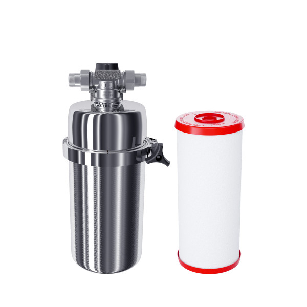 • Магистральный фильтр среднего размера. Модель оснащена быстросъемным креплением «американка». Нижний полукорпус изготовлен из нержавеющей стали марки AISI 316, особенно устойчивой к коррозии и высоким температурам.